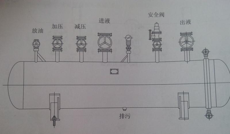 氨制冷系统冷库设备压力容器排液桶是用钢板焊制成圆筒形,两端焊有拱形封头的密闭压力容器。在筒身上部有一系列接头阀门:放油管接集油器;加压管一般与热氨分配站或油分离器的出气管,主要用来加压,将桶内液体排出;减压管接回气管路,以降低桶内压力,使液体能顺利进入桶内;进液管接液体调节站或设备的排液管;出液管接氨液分离器供液管或调节站供液管路。
