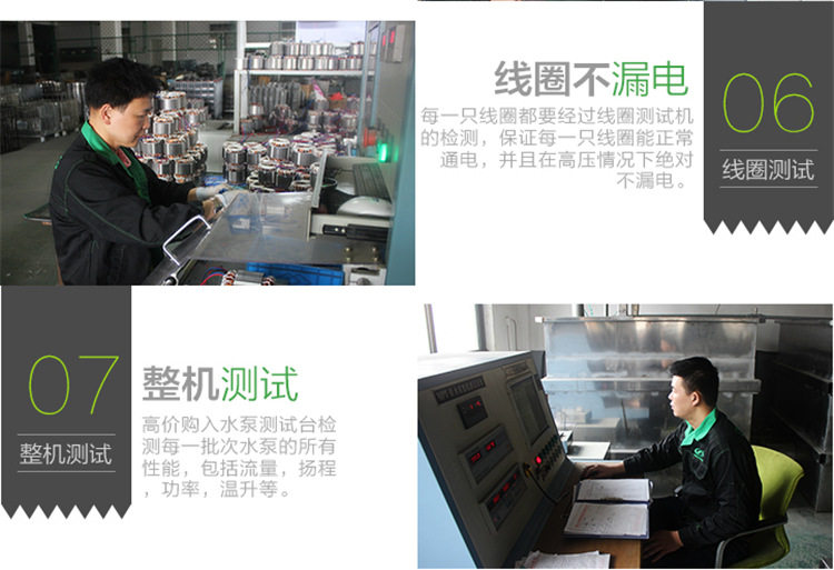 答:您好,咱们家水泵适用最近的304高效不锈钢轴,水泵内的油室食品级油,100%铜线,导电性强,使用寿命更长。