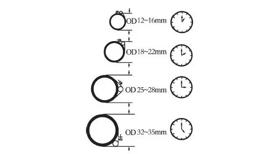 对于12 ~ 16 mm的管径,感温包宜安装在吸气管的“1 点钟”位置;
