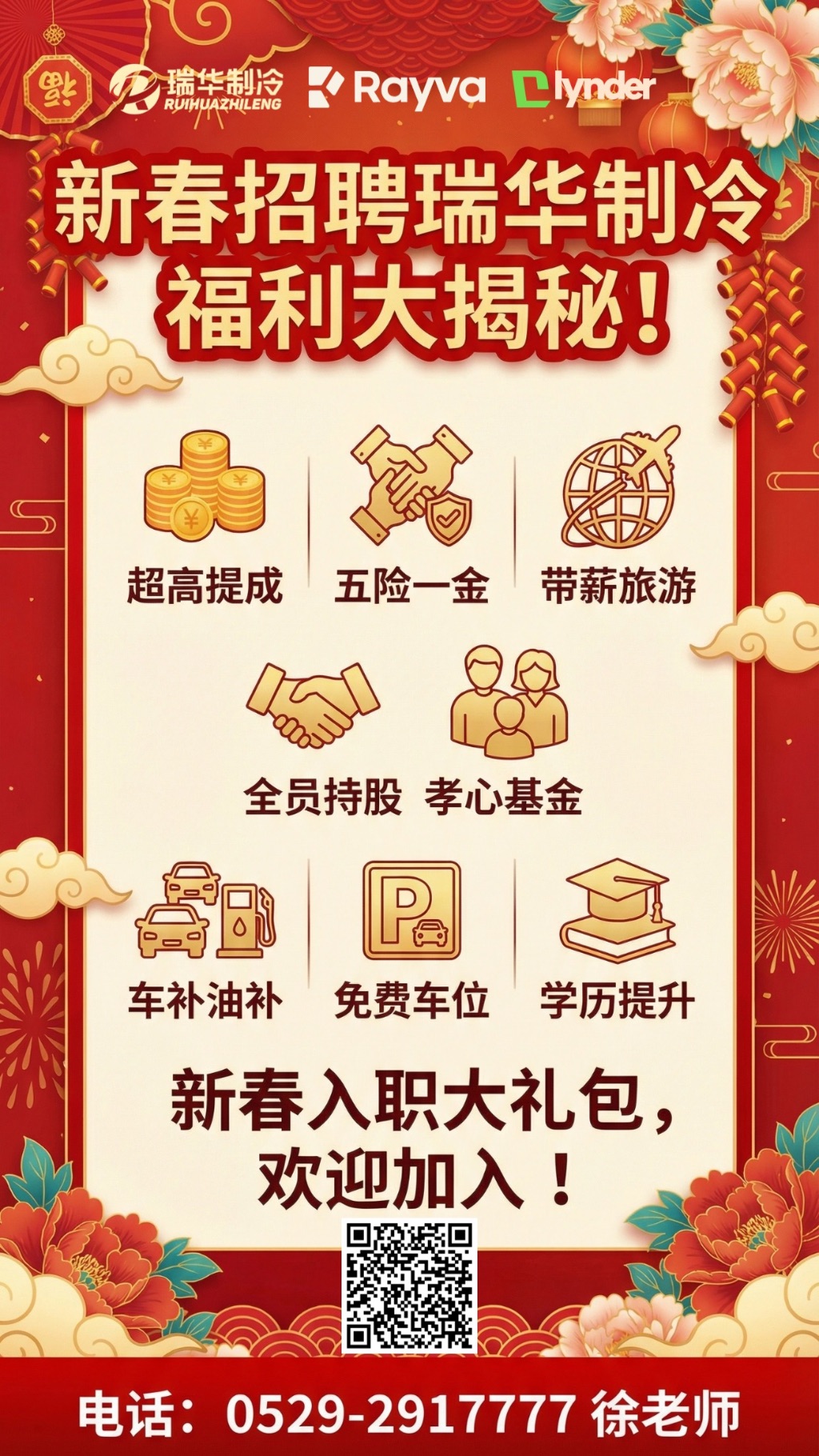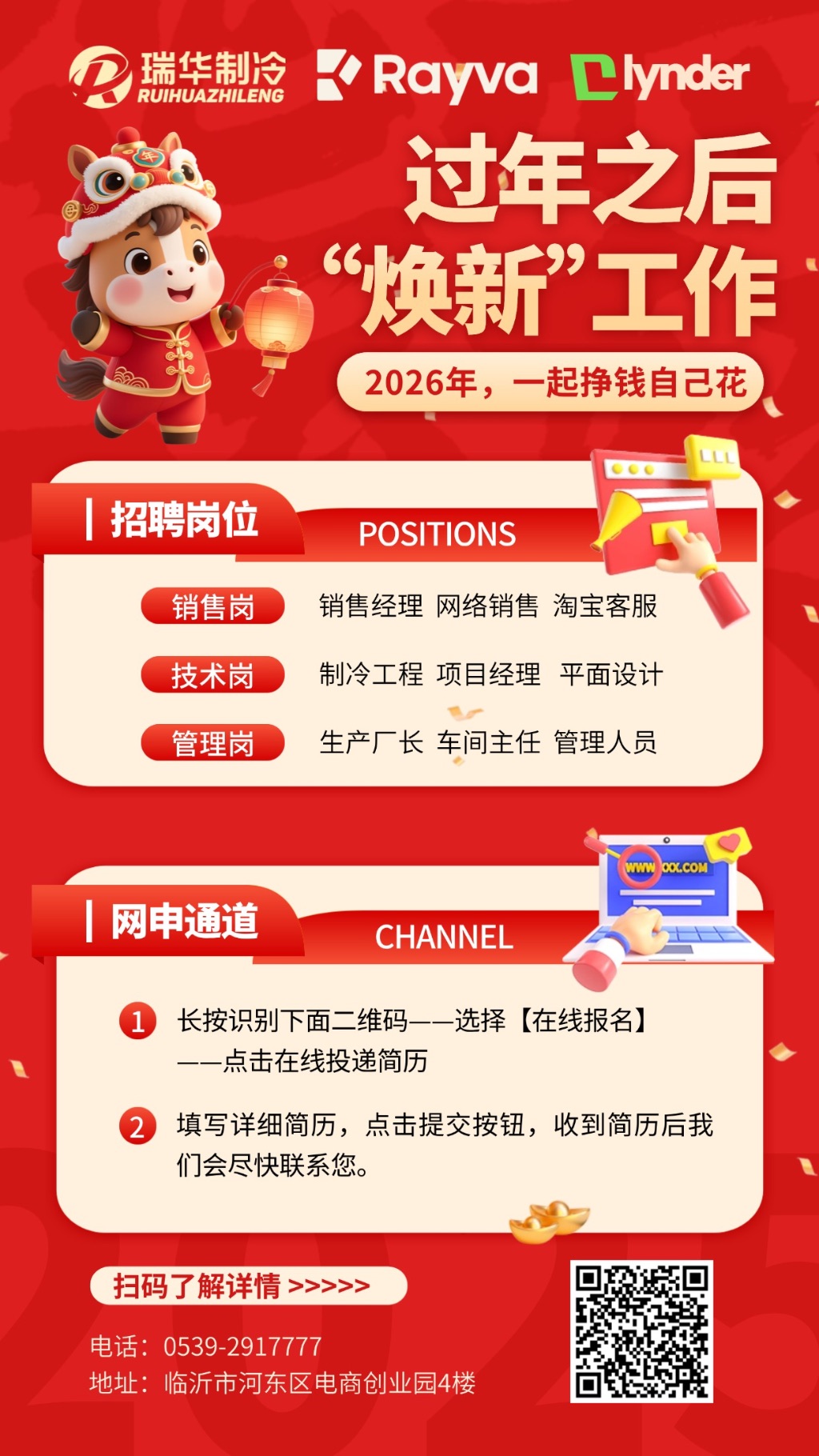 2026新春纳贤招聘正式启动,策马扬鞭启新程,加入瑞华制冷,共创锦绣前程,冷炼匠心,热拥未来,职等你来,共赴山海。推荐人才入职,奖励推荐人300-500元微信红包,马年入职大礼包,有机会享现金红包,推荐入职奖励最高2000元,春节返乡补贴。