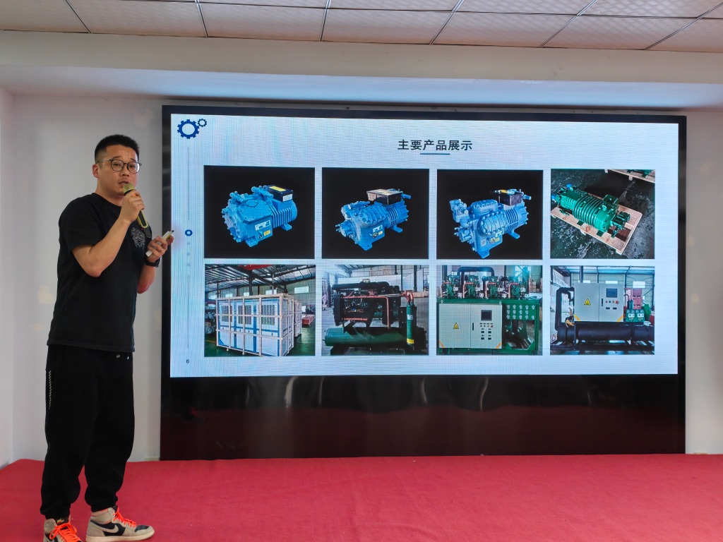 江苏乐雪、泰州环球相关负责人先后致辞,介绍企业发展历程、技术实力与核心产品,重点展示高端物联网 AI 制冷机组、高效节能制冷设备等前沿成果,聚焦果蔬冷藏、冷链物流、医药冷库、食品加工、预制菜生产等多元应用场景,为现场嘉宾带来一场技术盛宴。